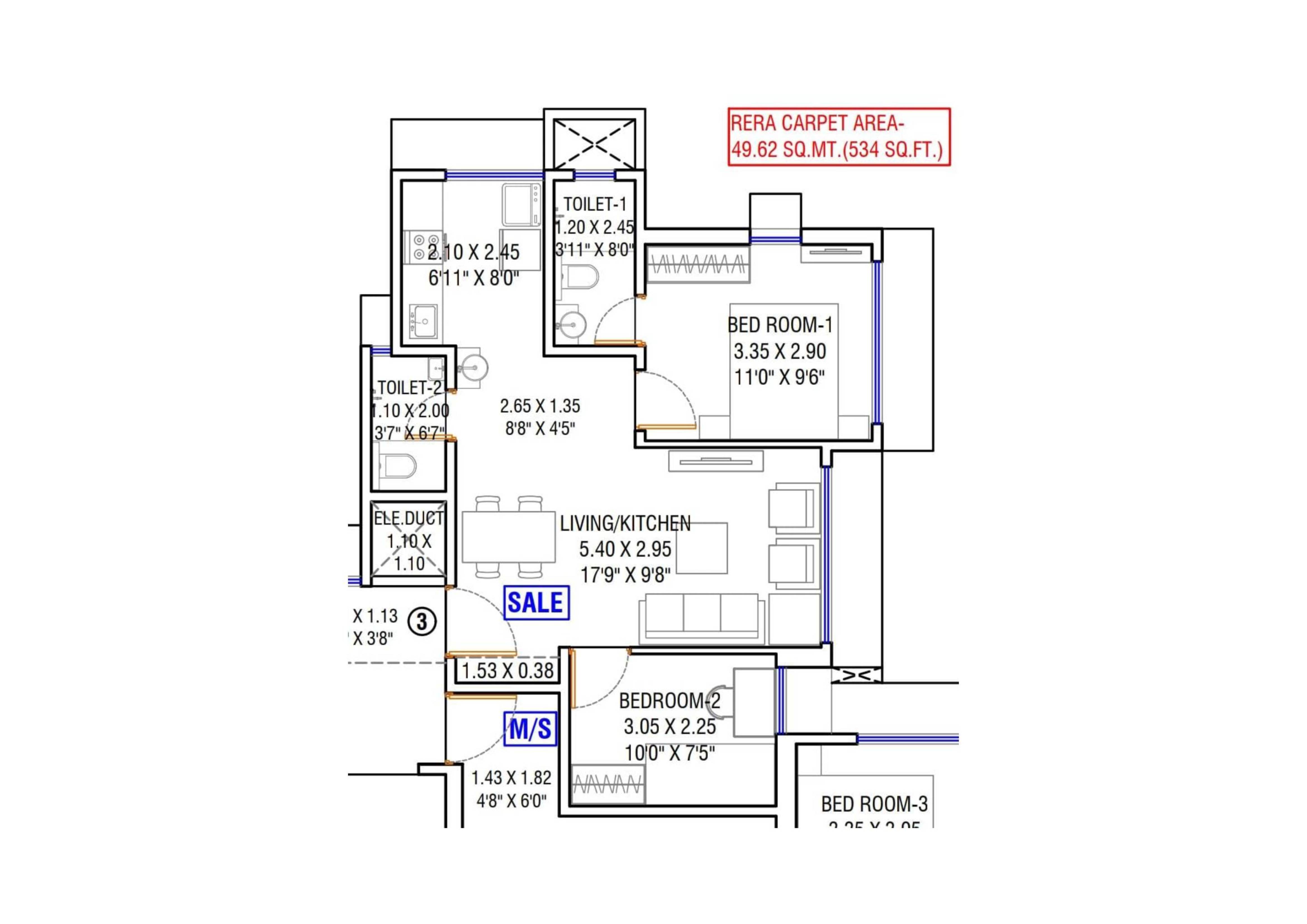 534 Sq.Ft.
